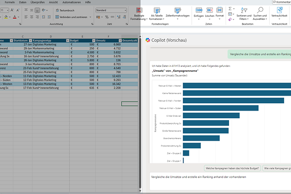 Das Verstehen von Daten ist der Schlüssel zu fundierten Entscheidungen, und hier zeigt Copilot seine wahre Stärke. Copilot kann komplexe Datenmengen analysieren und Ihnen dabei helfen, Muster und Trends zu erkennen – egal ob es darum geht, Verkaufszahlen nach Quartalen zu vergleichen oder Kundensegmente zu identifizieren.