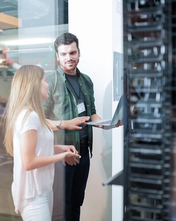 zwei Menschen unterhalten sich über Sicherheit im Business und der IT