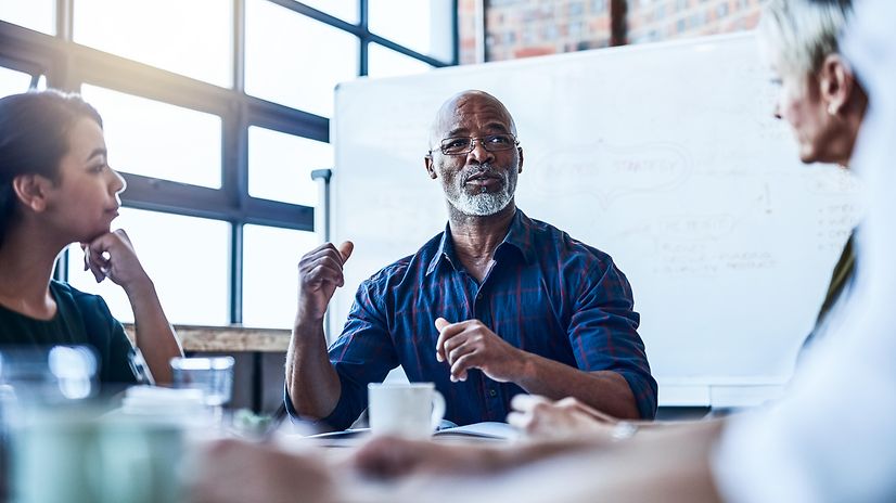 Personen am Tisch diskutieren über den Digitalisierungszuschuss