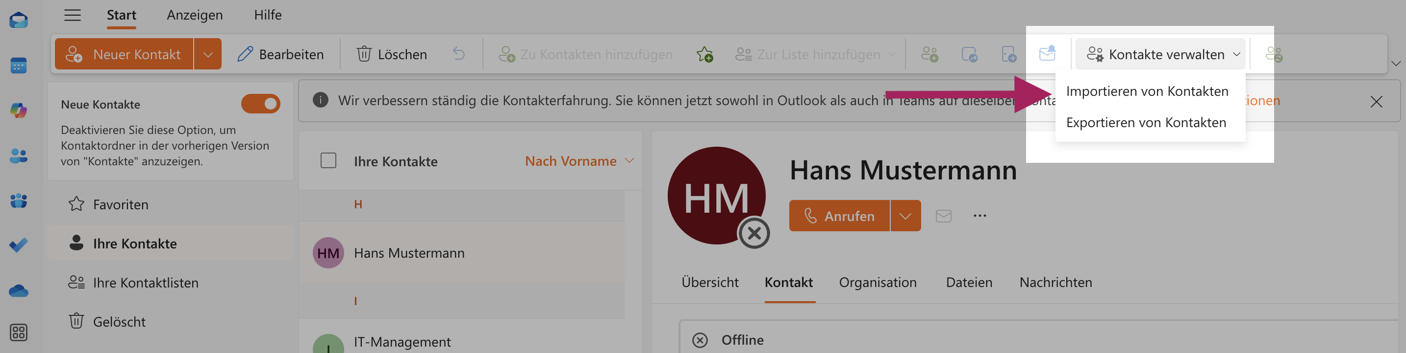 Schritt 6: Ihre Kontakte sind nun erfolgreich in Microsoft 365 bzw. Office 365 importiert worden.
