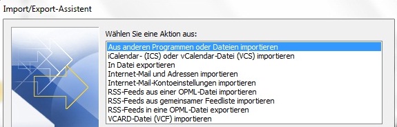 Anschließend wechseln Sie wieder zum Import/Export-Assistenten. Wählen Sie dieses Mal die Option „Aus anderen Programmen oder Dateien importieren“.