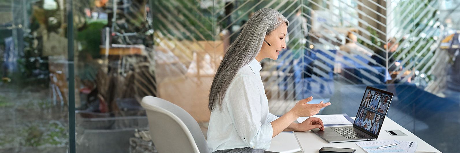 Geschäftsfrau während einer Videotelefonie über CompanyFlex im Büro
