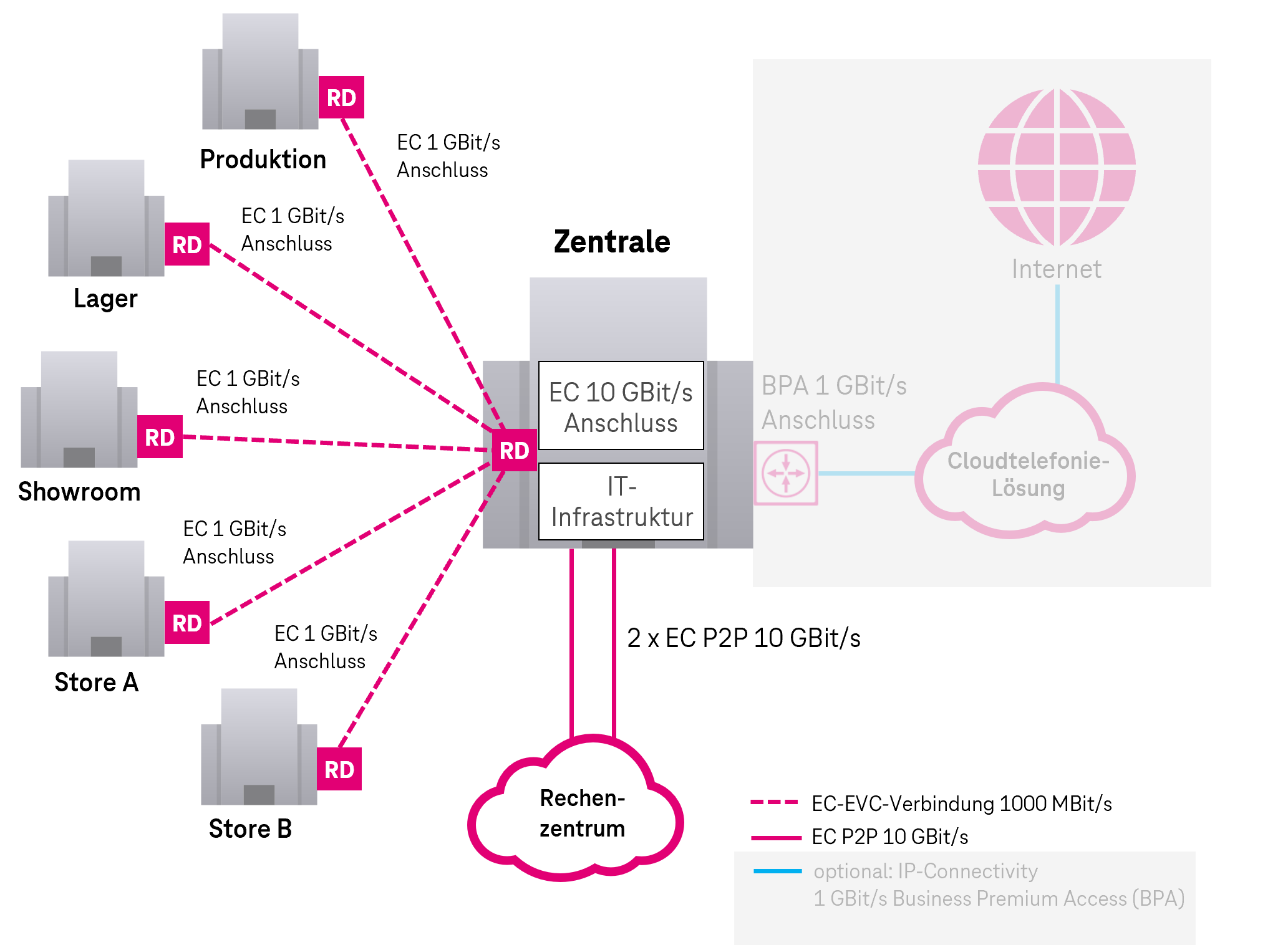 Wir bieten Ihnen das beste Netz für die Vernetzung komplexer Systeme und Anwendungen sowie höchste Datensicherheit. Mit unterschiedlicher Technik stehen Ihnen zwei Varianten für eine reibungslose standortübergreifende Unternehmenskommunikation auf höchstem Niveau zur Verfügung.